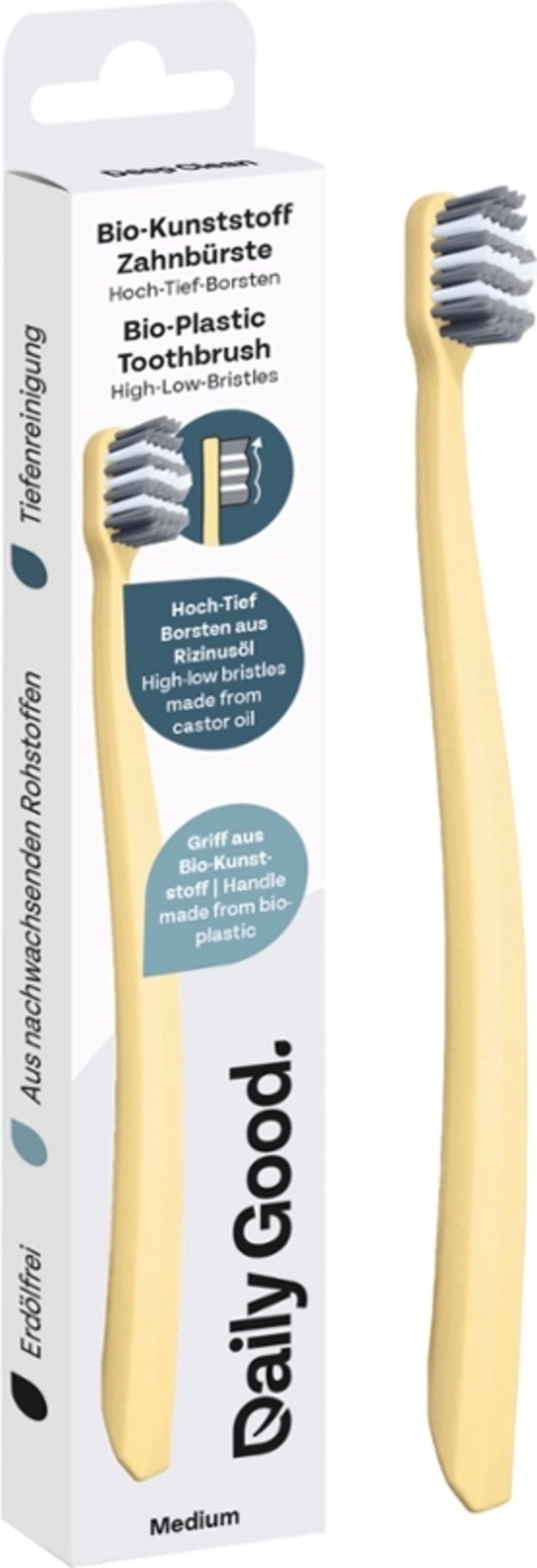 Ennek a fogkefének köszönhetően nyugodt lelkiismerettel csökkentheti az ásványolajtermékek fogyasztását. Speciális, magas-alacsony sörtéjű profilja alapos tisztítást biztosít – még a fogak között is. A nyél cellulóz alapú bioműanyagból, a sörték pedig ricinusolajból készültek.