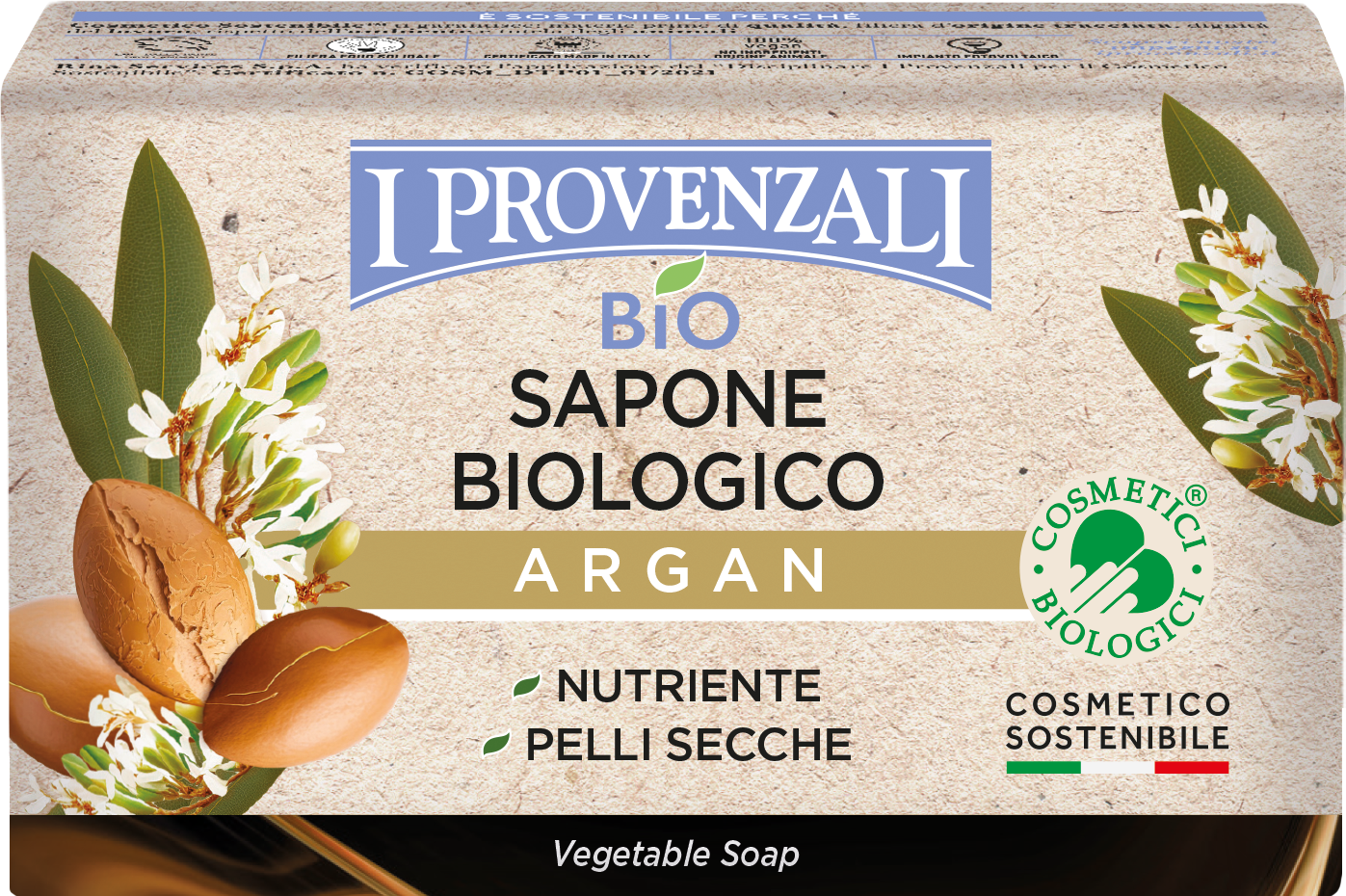 Ez a szappan különböző növényi olaj alapú, valamint ápoló és hidratáló argánolajjal gazdagított.