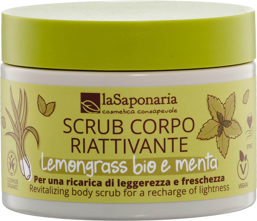 A Fairtrade nádcukorral, mandulahéj porral, sóval és revitalizáló növényi kivonatokkal előállított peeling számos előnnyel rendelkezik: kisimító hatású és eltávolítja az elhalt hámsejteket, serkenti a mikrokeringést, támogató cellulitisz esetén és csodálatosan puhává teszi a bőrt. A peeling borostyán (tonizáló), ginkgo (anti-cellulit), rozmaring (vérkeringést támogató), valamint citromcirok és menta illóolajokkal (aktiváló és tisztító) gazdagított.