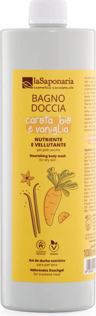 laSaponaria Tápláló és selymesítő tusfürdő - Vanília és sárgarépa, 1 l