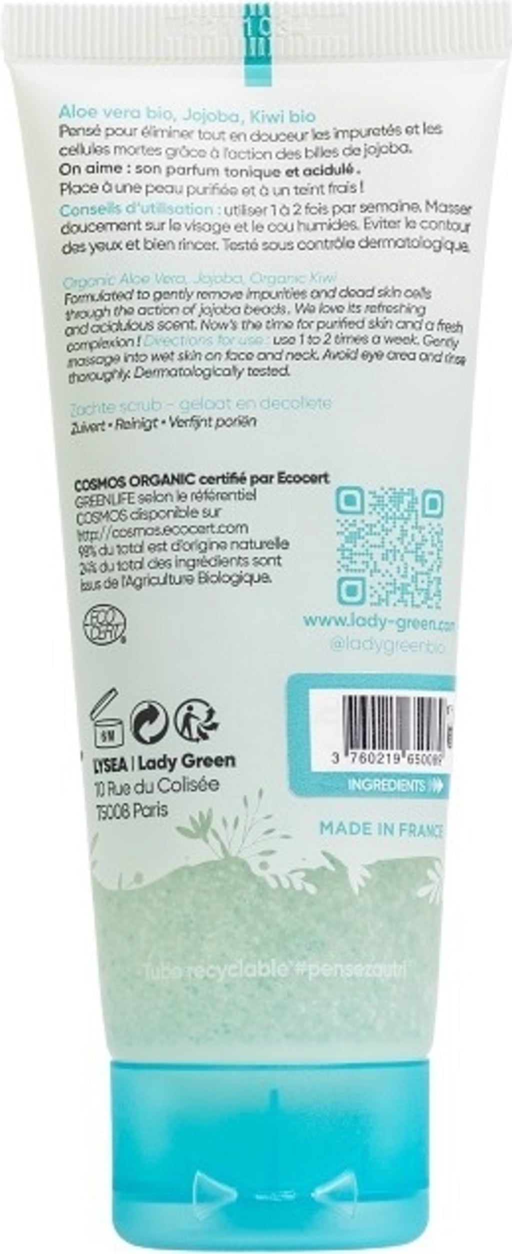 Ez a kíméletes arcpeeling optimálisan tisztítja a zsíros és kombinált bőrt. Cellulózrészecskék és jojobagyöngyök kombinációját tartalmazza, amely gyengéden eltávolítja az elhalt hámsejteket, és felszabadítja az eltömődött pórusokat. Ugyanakkor az aloe vera és a neem gondoskodik a pórusokig hatoló, mély tisztításról, míg a kivi- és almakivonatok finomítják a bőr megjelenését, valamint új ragyogást kölcsönöz a bőrnek. A wellness-plusz a frissítő, sziporkázó illat.
