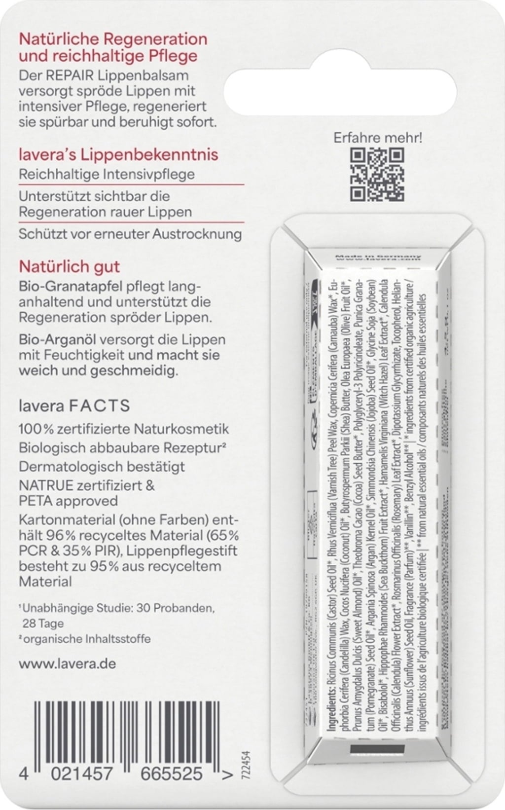 | Gyártó: | Laverana GmbH & Co. KG, Am Weingarten 4, 30974, Wennigsen, Németország, www.lavera.de/impressum |