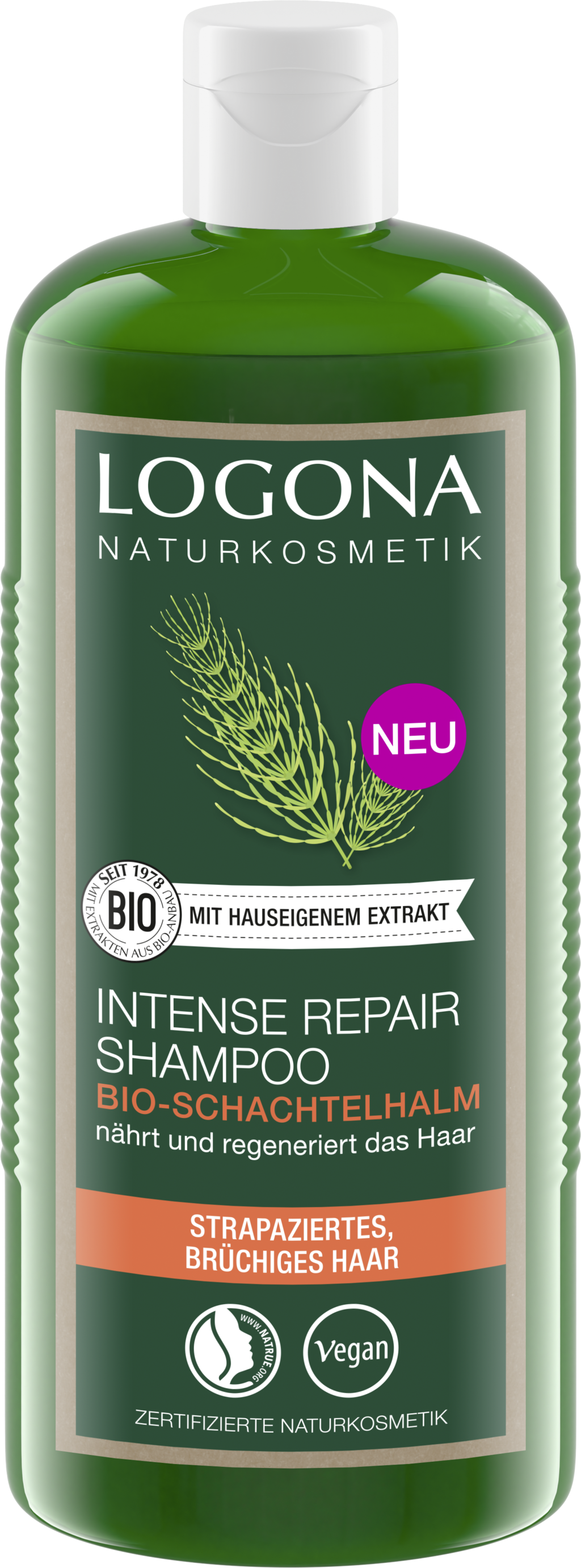 Ez a bio zsurlókivonatot, bio inka inchi olajat és bio aloe verát tartalmazó sampon értékes tápanyagokat biztosít, különösen a sérült és töredezett haj számára, lehetővé téve azok jobb regenerálódását. A vegán regeneráló formula különösen gyengéd tisztító tenzideken alapul, és intenzív hidratálást biztosít, így a haj visszanyeri természetes fényét. A formula erősíti a töredezett hajat és javítja annak szerkezetét, megelőzve a hajtöredezést.