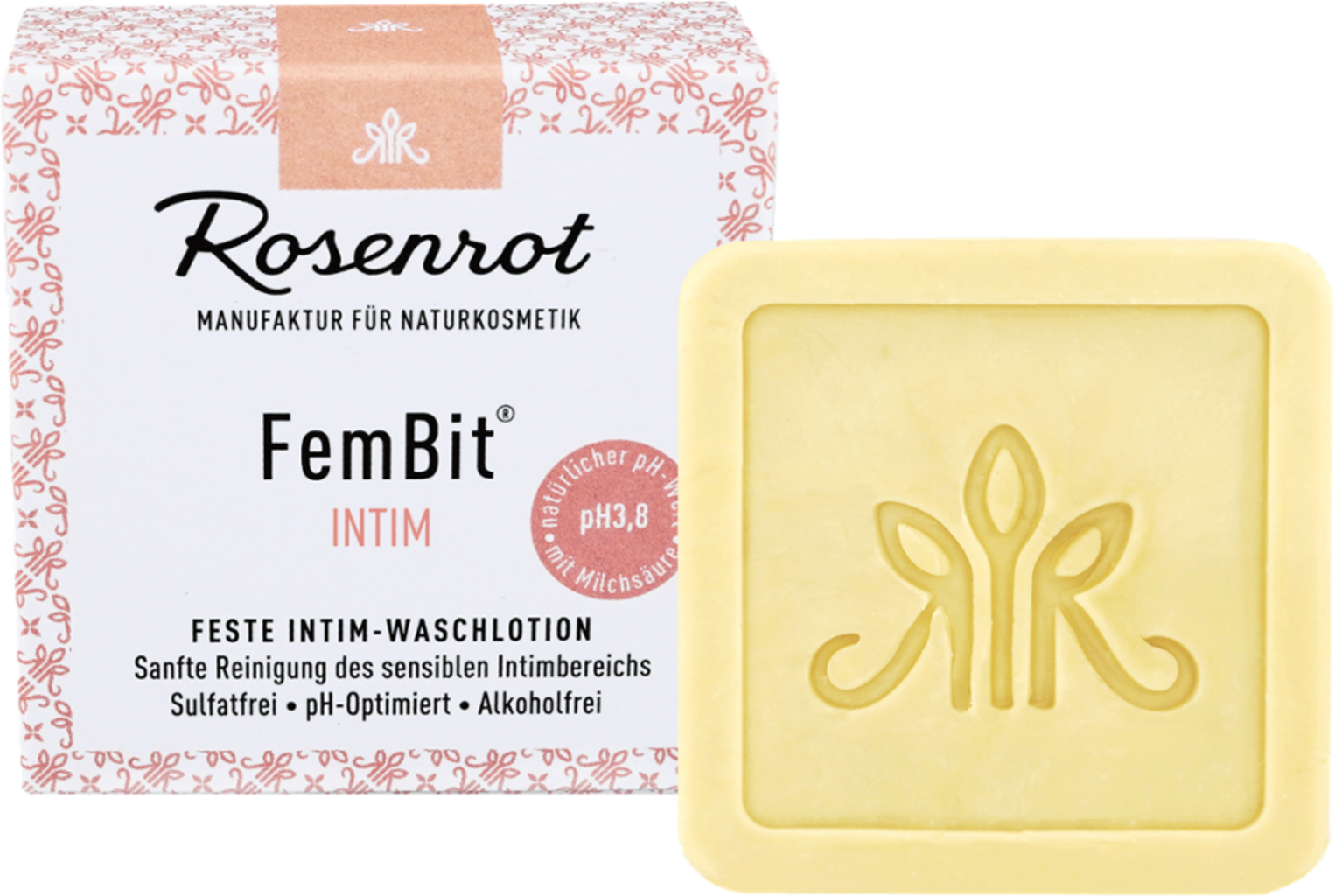 A FemBit® Intimtisztító segítségével a női nemi szervek területe rendkívül kíméletesen és speciálisan az adott terület igényeihez szabott receptúrával tisztítható. A szilárd tisztító pH-értéke tejsavval 3,8-ra beállított, így támogatja az intim flóra egyensúlyát. Ugyanakkor az aloe verából és a csipkebogyó magjából származó értékes bio kivonatok ápoló lipidekkel látják el a bőrt, valamint támogatják a sejtregenerációt.