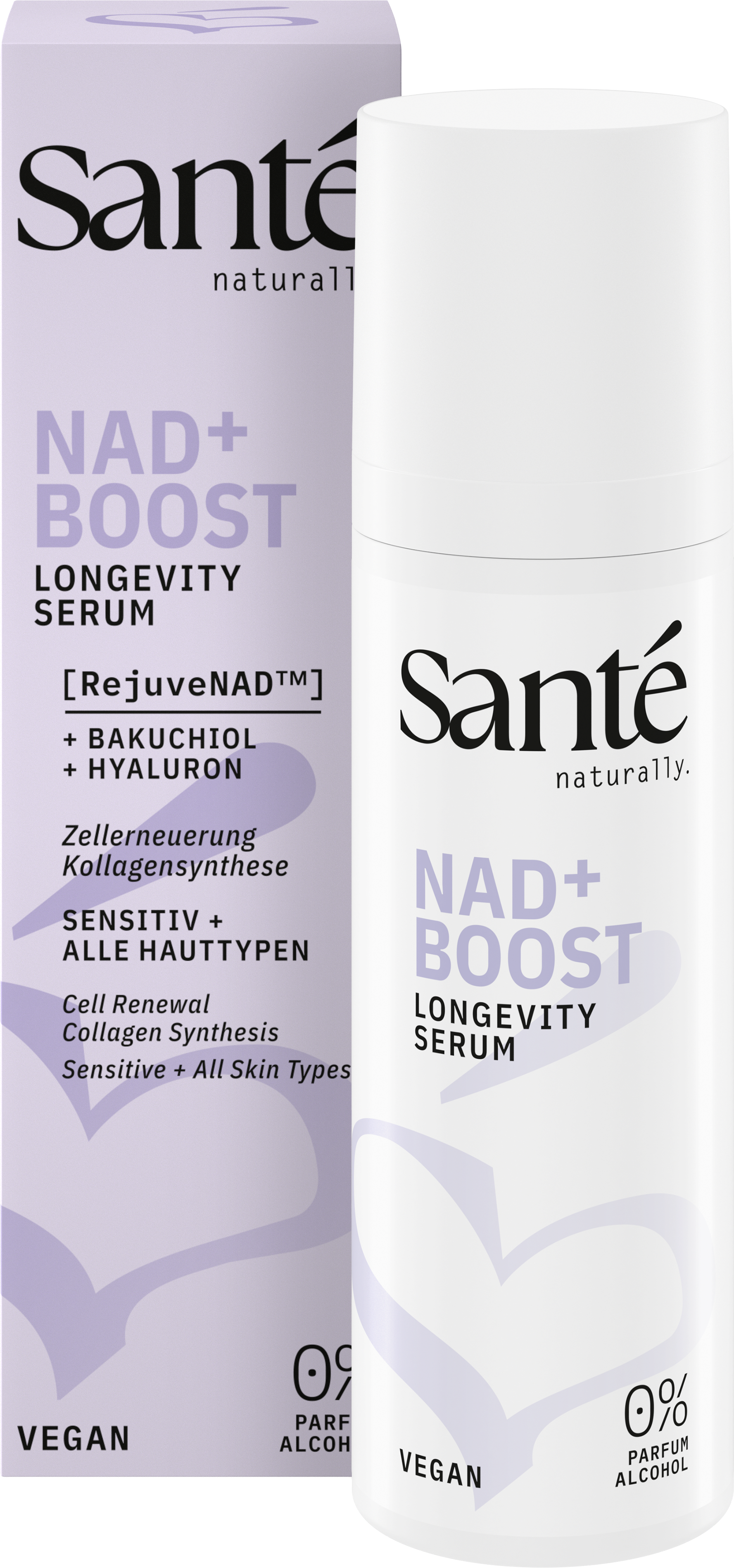 A NAD+ Boost Longevity szérum minden bőrtípus számára előnyös innovatív ápolást biztosít. Könnyed, modern textúrája gyorsan felszívódik a bőrben, és optimálisan kiegészíti a napi szépségápolási rutint. A well-aging formulában RejuveNAD™, bakuchiol és Kaliprane található, ezáltal kisimító és feszesítő tulajdonságokkal rendelkezik, véd az oxidatív stressz ellen, és így megelőzheti a bőröregedés első jeleit.