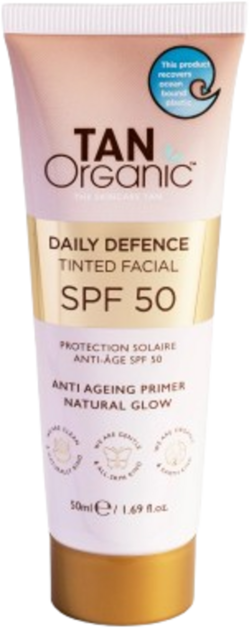 TAN Organic Facial Daily Defence színezett fényvédő krém SPF 50, 50 ml
