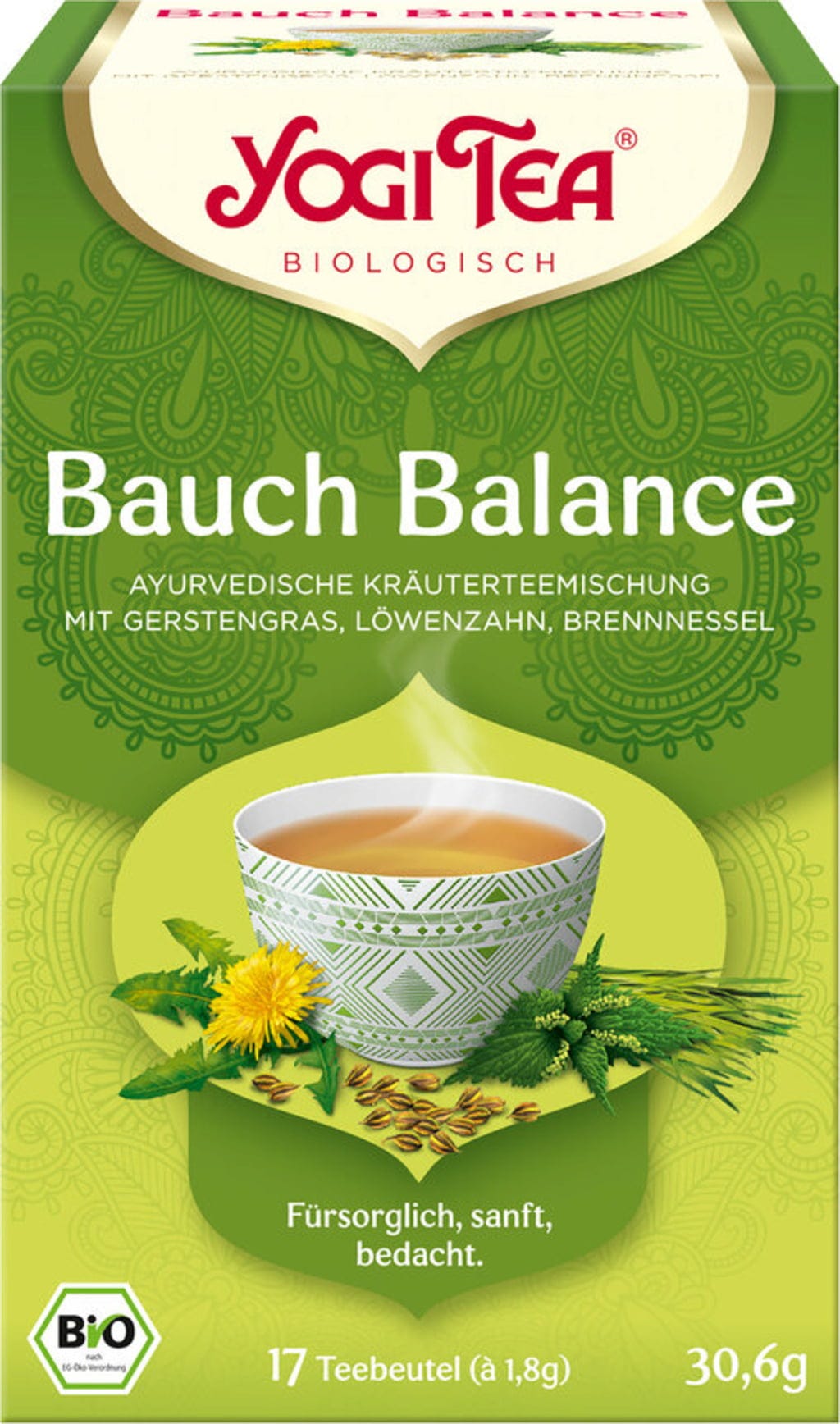 Gondoskodó, gyengéd, figyelmes – így jelenik meg ez az ájurvédikus gyógytea-keverék. Tökéletes mindazok számára, akik több könnyedségre vágynak a mindennapokban. Az árpafű, a pitypang és a csalán enyhe íze is gyengéd a szájpadláson.